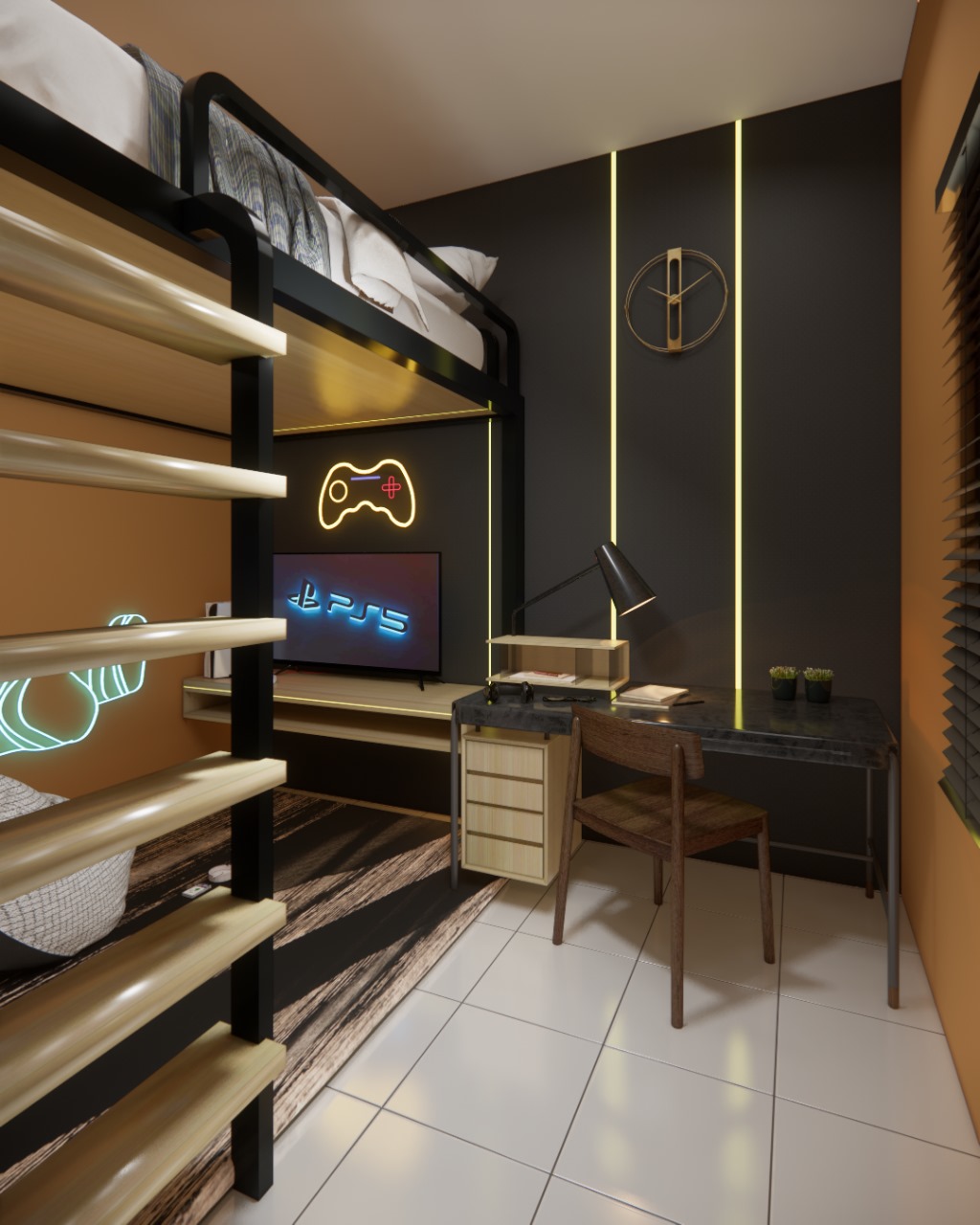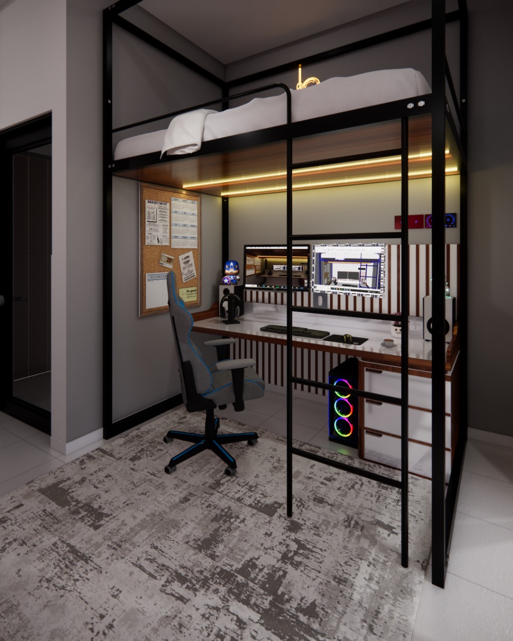 Kami membuat desain interior custom dan visualisasi 3D berkualitas tinggi. Fokus pada fungsi, estetika, dan detail material.